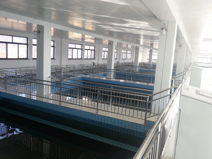 工程規(guī)模:建設(shè)規(guī)模5萬m3/d,將現(xiàn)有折板反應(yīng)+斜管沉淀+普通快濾池工藝(2.5萬m3/d ),隔板反應(yīng)+斜管沉淀+無閥濾池(1.9萬m3/d ),水力循環(huán)澄清池+無閥濾池(0.6萬m3/d )三個(gè)序列凈水設(shè)施整合改造為以平流沉淀池+V型濾池為主的凈水工藝,出水水質(zhì)滿足《生活飲用水衛(wèi)生標(biāo)準(zhǔn)》(GB5749-2006)的要求。