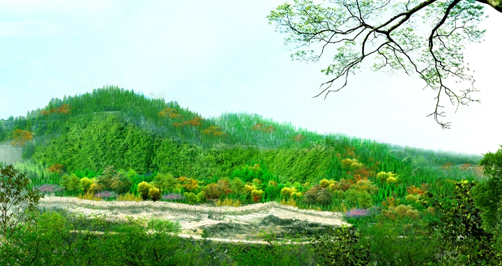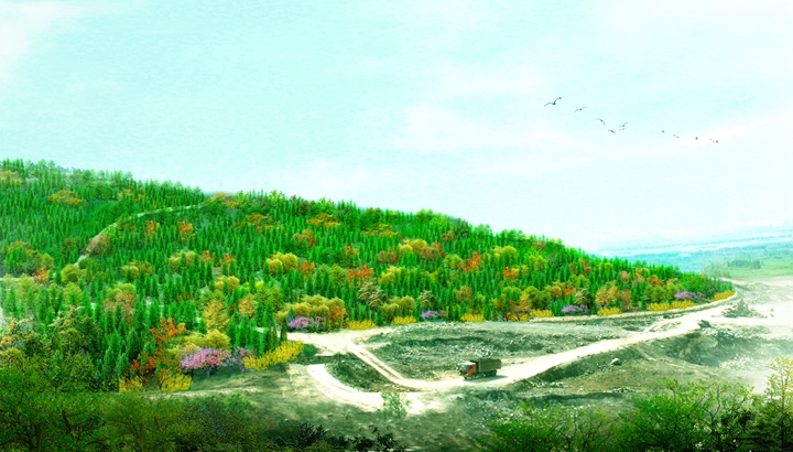 工程規(guī)模:該工程位于高新區(qū)孫村立交東南,在建蓮花山殯儀館西側(cè)。主要包括殯儀館西側(cè)荒山、采石跡地,總綠化面積約172.6畝。